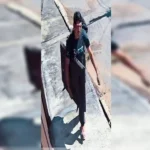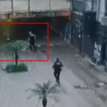 Em um vídeo cedido pela polícia militar o homem corre tenta esconder a faca e…