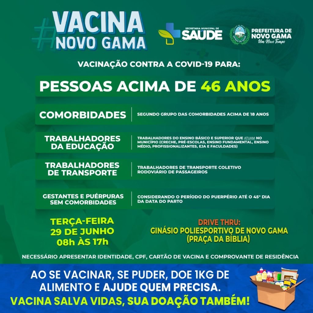 OFÍCIO N° 29/2021 NVE/SMS Novo Gama – GO, 28 de junho de 2021 Aos Profissionais da imprensa que atuam no município do Novo Gama A par de cumprimentar sirvo-me do presente para solicitar aos profissionais da imprensa que atuam no Município do Novo Gama que amanhã a partir das 8 da manhã até as 17 […]