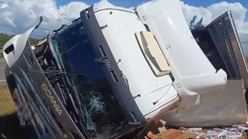 Carga milionária de cigarros contrabandeados é saqueada após acidente na BR-050