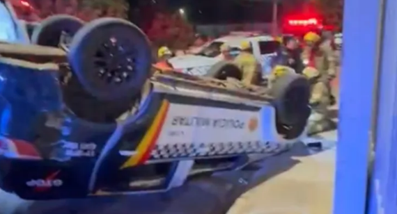 Viatura da PMDF capota durante perseguição em Samambaia