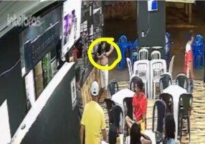 Pelo vídeo é possível ver o momento que a vítima é esfaqueado no tórax