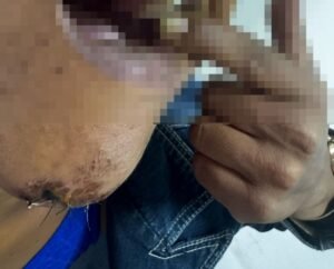 Ele desferiu diversas pauladas com um pedaço de madeira (“caibro”), atingindo a cabeça, o rosto e o ombro da vítima, dizendo: “Agora eu termino, sua desgraça, vou te matar.” Ela só não foi morta porque a filha interveio fisicamente, segurando o agressor no momento em que ele se preparava para dar mais um golpe. A vítima foi socorrida pelo SAMU, levada à UPA de Luziânia, onde ficou internada, recebeu pontos no queixo, teve três dentes fraturados e hematomas por todo o corpo.