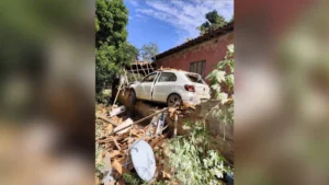 Um desentendimento familiar terminou em confusão, agressão física e destruição, na última segunda-feira (9), em uma propriedade localizada na zona rural de Corumbá de Goiás, na região da Fazenda Barro Branco, próximo aos Barbosas. Um homem foi preso em flagrante após lançar um carro em alta velocidade contra a casa onde vive com a família. O pai e o irmão estavam na área externa no momento do atentado.