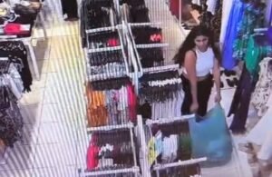No vídeo, que tem a duração de pelo menos um minuto, é possível ver as duas mulheres andando dentro da loja separando inúmeras peças de roupas ignorando as câmeras de monitoramento.