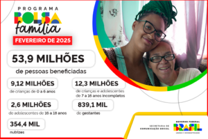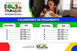 O Bolsa Família contempla em fevereiro de 2025 um total de 20,56 milhões de famílias em todos os 5.570 municípios do país. O investimento do Governo Federal é de R$ 13,8 bilhões. Das quase 54 milhões de pessoas beneficiadas neste mês, 9,12 milhões são crianças de zero a seis anos, 12,3 milhões são crianças e adolescentes de sete anos a 16 anos incompletos, e 2,6 milhões são adolescentes de 16 anos a 18 anos incompletos. O valor médio do benefício neste mês é de R$ 671,81. O cronograma de pagamentos tem início nesta segunda-feira, 17 de fevereiro, e segue até o dia 28, de acordo com o fim do Número de Identificação Social (NIS) dos beneficiários (tabela abaixo).
