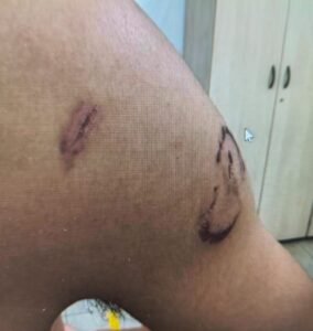 A vítima é uma mulher de 20 vinte anos, contou á polícia que durante uma discussão com seu namorado ambos entraram em luta corporal, sendo que ambos foram lesionados.