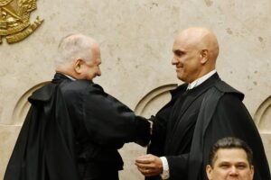 Edson Fachin integra o Supremo desde 2015 e atuou na vice-presidência da Corte no último biênio, ao lado do ministro Luís Roberto Barroso. Ao destacar a atuação do novo vice-presidente do STF, disse que Morais chegou ao STF com carreira consolidada como jurista e professor de direito constitucional. “É um amigo, um juiz feito fortaleza”, emendou. Moraes tomou posse na corte em 2017.