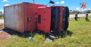 Um caminhão, um carro de passeio e uma motocicleta se envolveram em um acidente com capotamento na BR-040, próximo ao viaduto de Santa Maria (DF), na manhã desta terça-feira (27/1). De acordo com informações do Corpo de Bombeiros Militar do Distrito Federal (CBMDF), após a colisão o caminhão e o carro acabaram capotando deixando três pessoas feridas.