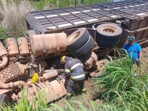 Além do socorro à vítima, os bombeiros também atuaram no apoio à retirada dos animais que ficaram presos na estrutura do veículo, garantindo a segurança da ocorrência e a liberação da rodovia. A carreta transportava cerca de 75 bovinos, dos quais 15 morreram em decorrência do acidente.
