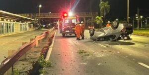 Carro capota no Park Way durante a madrugada; não há registro de feridos