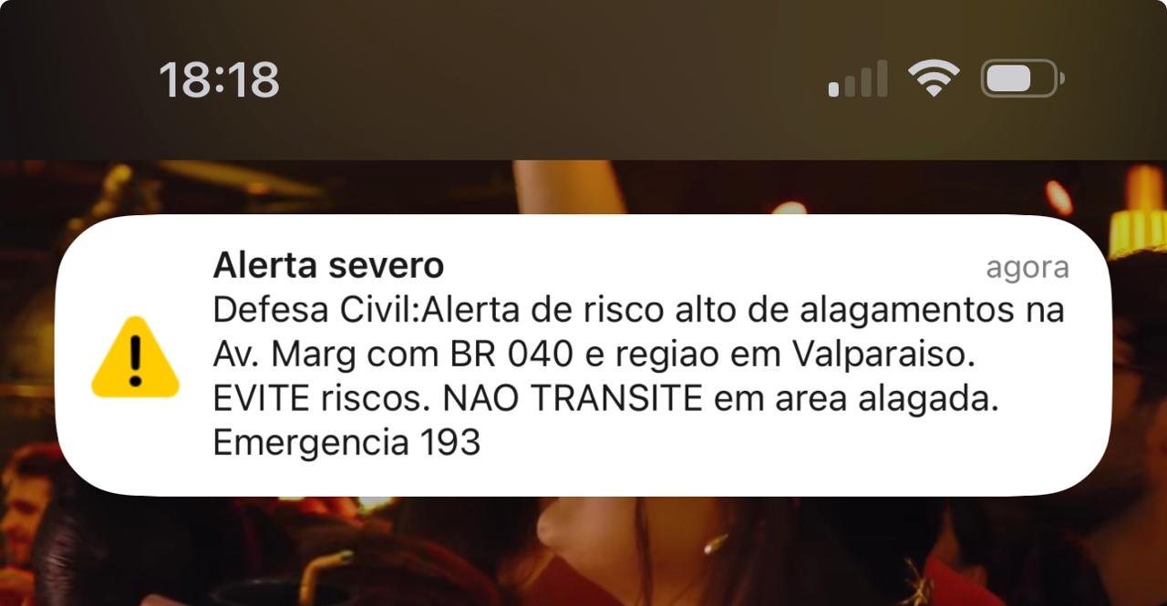 Os alertas começaram a chegar via mensagem para vários usuários do DD61 Goiás tem alerta amarelo para risco de tempestades entre esta quarta-feira (18/2) e
