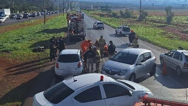 O Corpo de Bombeiros Militar do Distrito Federal (CBMDF) atendeu, às 06h46 desta segunda-feira (10/11/2025), uma colisão entre uma motocicleta e um carro de passeio