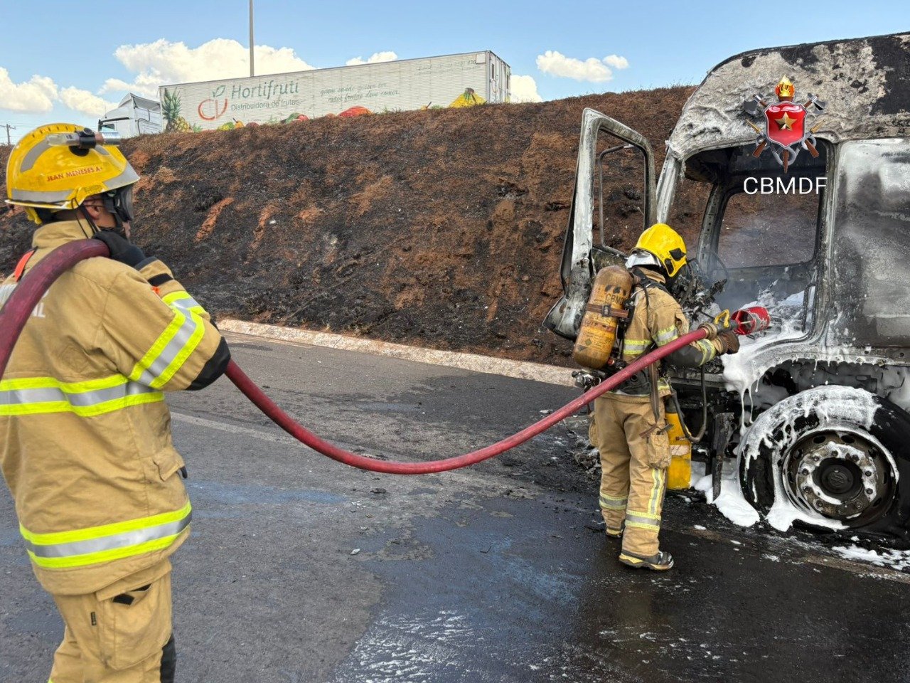 Trânsito na região ficou lento e equipes do Corpo de Bombeiros atuaram para controlar as chamas; ao menos três carros foram atingidos Fernanda Cavalcante Um