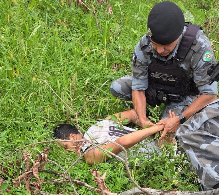 Criminosos detidos pela PM estavam com um simulacro de revólver, munições, duas facas, R$ 67 em espécie, 11 celulares e dois relógios Dois criminosos foram