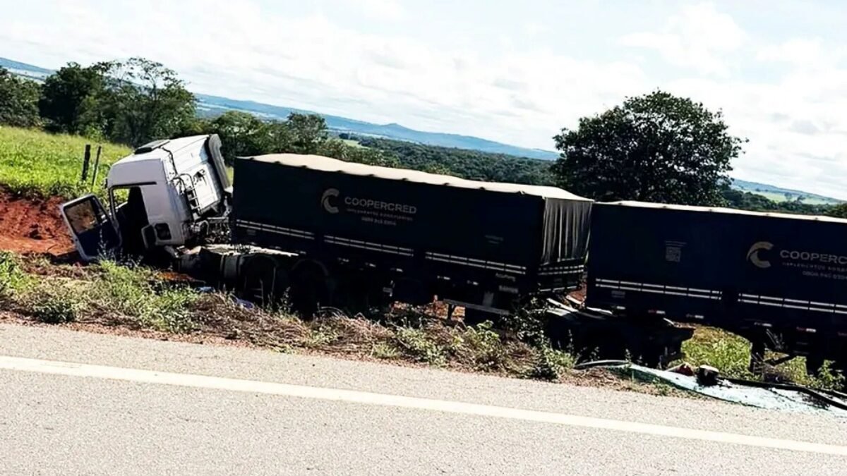 O veículo modelo Fiat Strada colidiu de frente com um caminhão Mercedes-Benz Actros com semirreboque acoplado Duas pessoas morreram em um acidente envolvendo um carro e