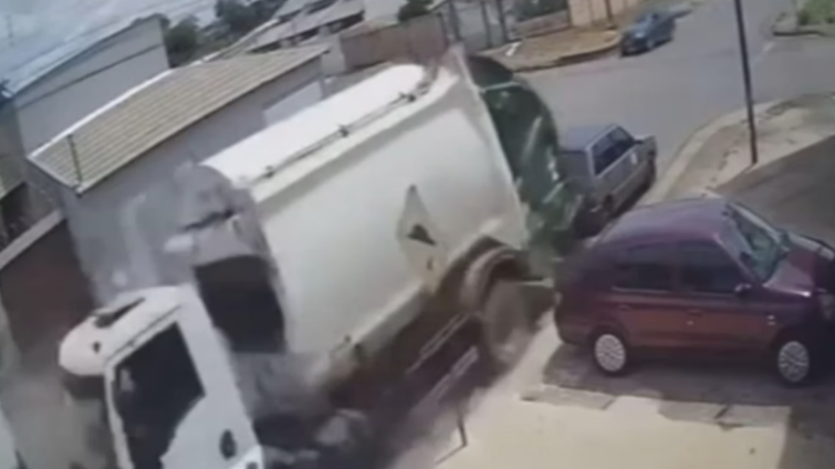Empresa responsável pelo caminhão afirma que prestou assistência à família moradora do imóvel que foi atingido pelo veículo Um caminhão de coleta de lixo aparentemente
