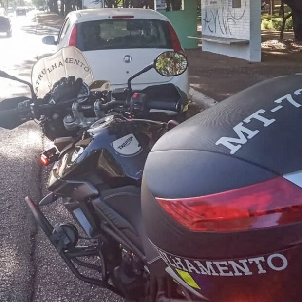 Durante a abordagem, os agentes constataram um débito total de aproximadamente R$ 40 mil, envolvendo diversas infrações de trânsito Um Fiat Palio com 162 multas