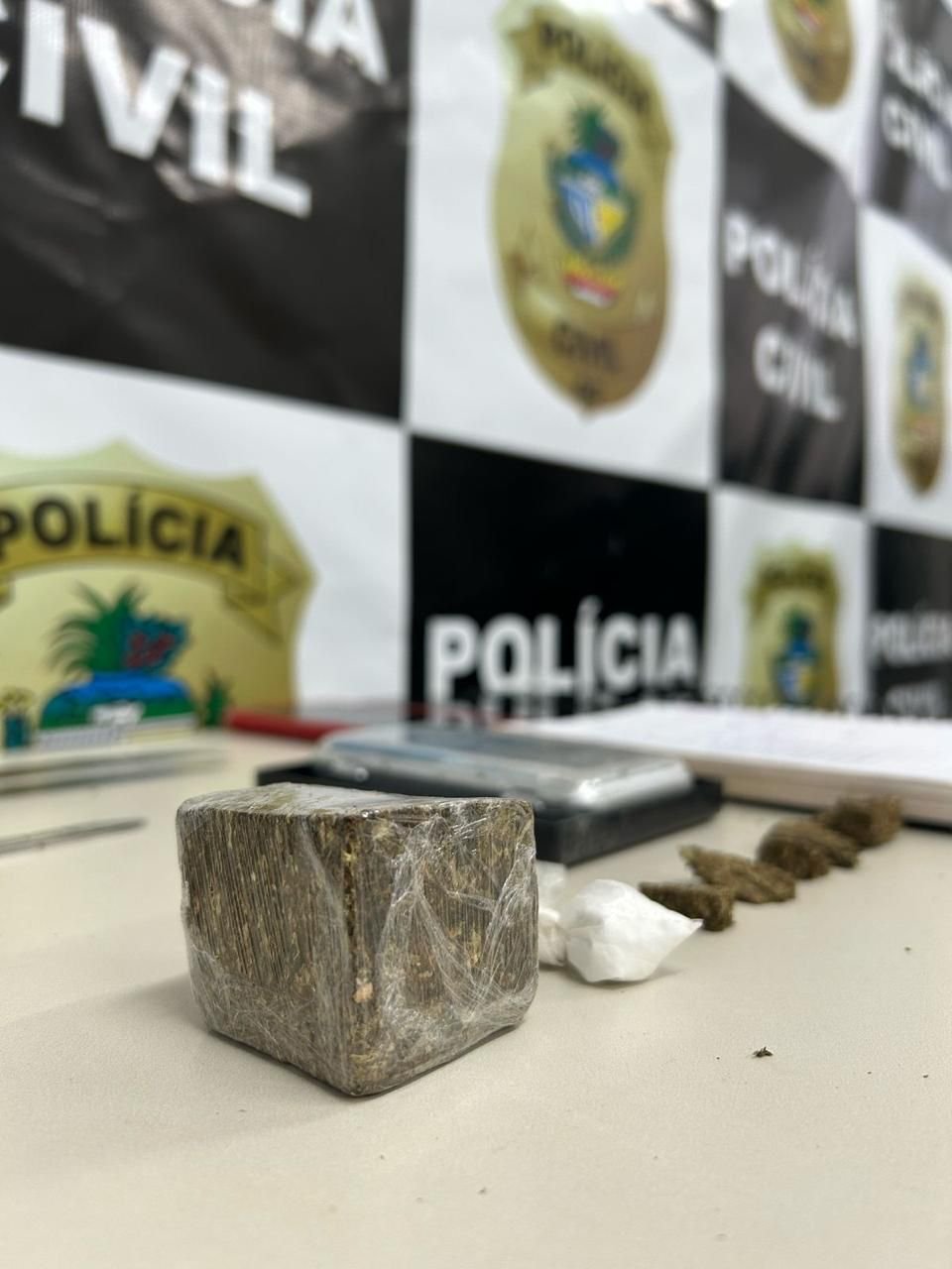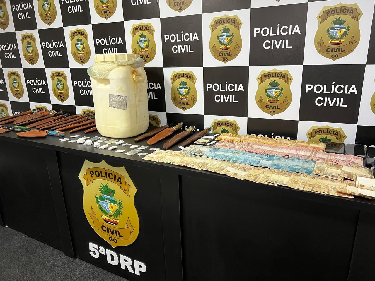 Na residência apontada como depósito do traficante, os policiais encontraram várias porções de drogas fracionadas pronta para venda A Polícia Civil do Estado de Goiás,