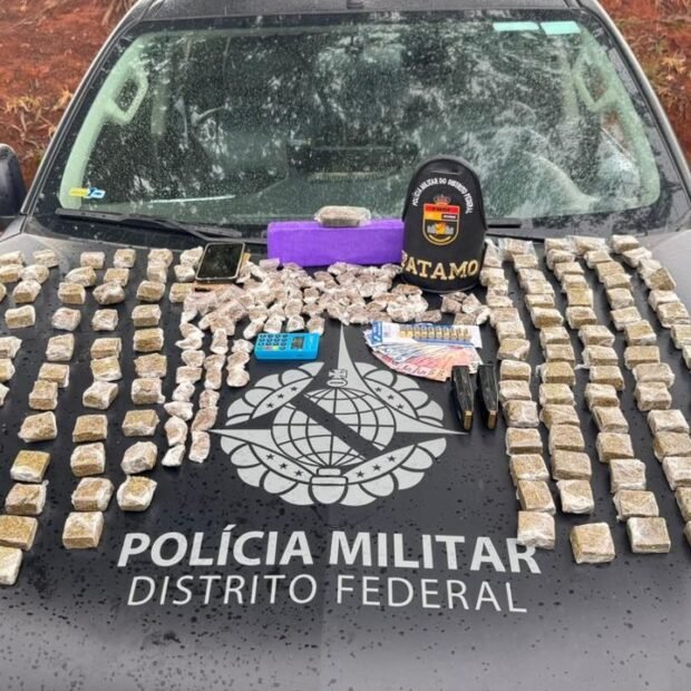 Policiais em estágio do XVII Curso de Patrulhamento Tático Móvel (Patamo) prenderam três homens em flagrante e apreenderam grande quantidade de drogas na manhã deste