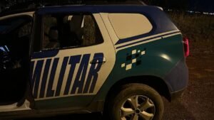 Os policiais que estavam na viatura se depararam com o veículo ocupado por dois suspeitos e tentaram fazer a abordagem, foram fazer abordagem os dois suspeitos desceram do veículo e um deles começou a atirar contra os policiais chegando acertaram a viatura policial como mostra foto, o segundo suspeito correu para o mato.