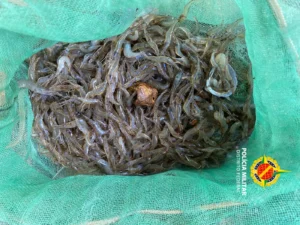 Durante a abordagem, foram localizados aproximadamente 8kg de peixes da espécie tucunaré e cerca de 500g de camarão-canela. Os suspeitos admitiram a utilização das redes para a captura dos crustáceos em local onde a pesca é vedada por decreto ambiental.