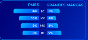 Entre os primeiros colocados estão os estados do Rio Grande do Sul e de Santa Catarina, com aumentos de 172% e 113% na emissão de pacotes, respectivamente, seguidos por Espírito Santo (68%) e Paraná (15%).