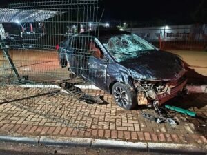 Câmeras de segurança registraram o momento de um acidente ocorrido na madrugada deste domingo (28), na região do Jardim das Américas 1ª Etapa, em Anápolis. As imagens mostram quando um motorista perde o controle do veículo, atravessa o alambrado da UniEvangélica e capota dentro da área da instituição de ensino.