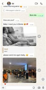 Até então, Luna não havia percebido que se tratava do mesmo holandês que se relacionava com Caroline. “Só descobri quando ele fez duas transferências bancárias, totalizando 350 euros. Obviamente, não quis correr o risco e não fui ao apartamento, ainda mais depois de todas as suspeitas envolvendo a morte da moça”, contou.