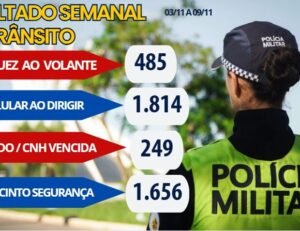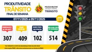 Em uma semana, PMDF registrou 485 casos de embriaguez ao volante; somente entre sexta e domingo (07 a 11 de novembro) foram 307 flagrantes. De acordo com dados divulgados pela Polícia Militar do DF, entre os dias 3 e 9 de novembro, 485 motoristas foram flagrados dirigindo sob efeito de álcool. Somente durante o fim de semana, de sexta (7) a domingo (9), 307 condutores foram autuados por embriaguez ao volante — o que representa mais de 60% das ocorrências da semana.