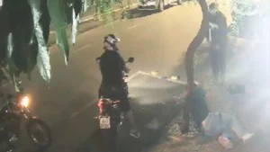 A vítima estava acompanhada, mas foi embora sozinha a pé depois de uma discussão. Neste momento, segundo a PM, os suspeitos decidiram “passar um susto” no homem, que foi perseguido pelo trio de moto. Imagens cedidas mostram o momento em que um dos homens desceu da moto e, ainda de capacete, derrubou a vítima no show.