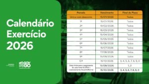 Secretaria da Economia repete modelo de 2025, com vencimentos sempre no dia 15, e amplia parcelamento ao incluir taxa de licenciamento