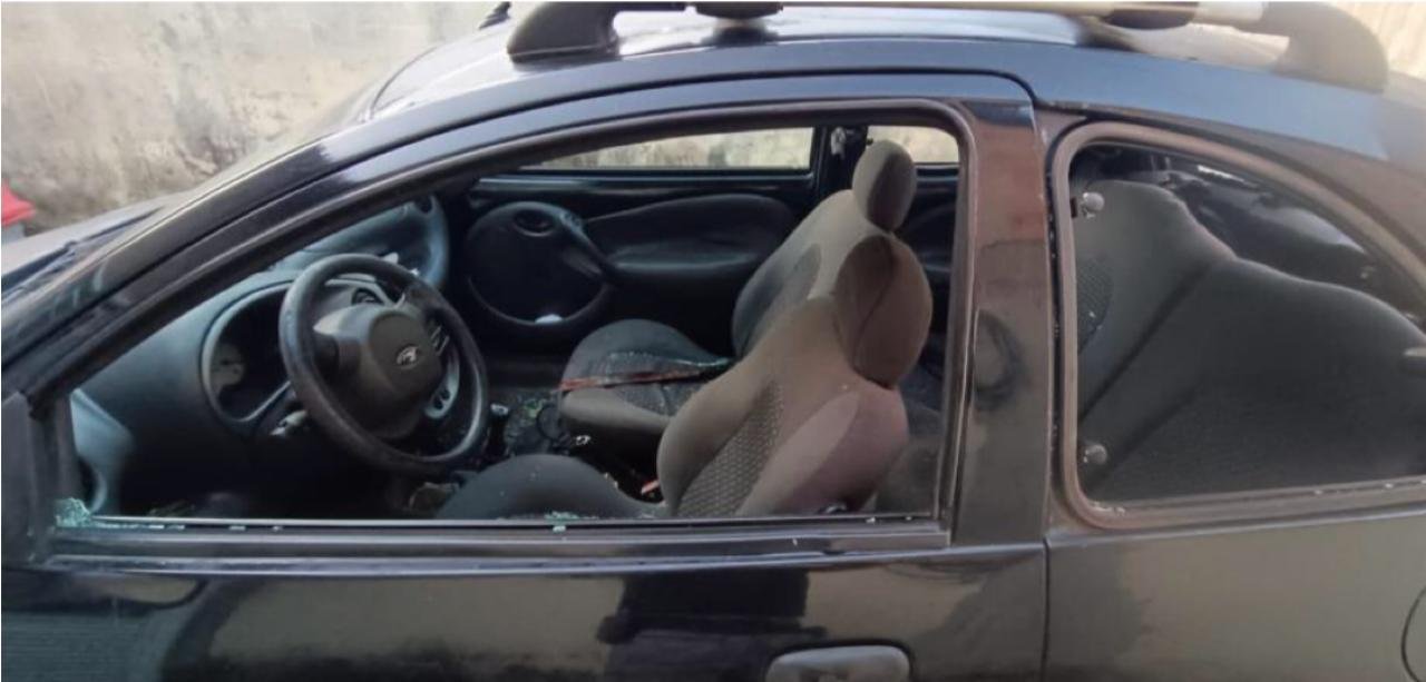 Na residência do acusado, os policiais militares localizaram o veículo Ford Ka estacionado na garagem com os quebrados e o facão utilizado,o acusado segue foragido.