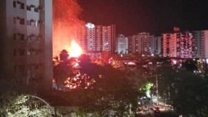 Um incêndio em área de vegetação na Avenida Tiradentes, no bairro Bandeirantes, em Caldas Novas, mobilizou o Corpo de Bombeiros na tarde desta sexta-feira (19). As chamas, que atingiram cerca de 10 metros de altura, se espalharam rapidamente por um bambuzal próximo ao Shopping Singapura, gerando preocupação em turistas e cidadãos que circulavam pela região.