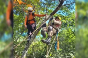Durante o resgate em uma área de difícil acesso, foi necessário o uso de técnicas de salvamento em altura, com ancoragem e progressão em árvores. A mulher, que estava consciente e sem ferimentos, foi resgatada com segurança pela corporação, assim como o equipamento usado por ela.