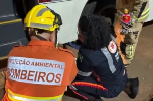 Corpo de Bombeiros Militar do Distrito Federal (CBMDF) informou que foi acionado para atender a ocorrência às 20h04 e encontrou a vítima sob o ônibus de transporte urbano, iniciando o protocolo de trauma.