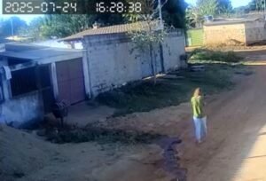 Vídeo mostra momento que ela se encontra com homem no final da rua