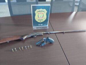 Na manhã de hoje, durante o cumprimento das ordens judiciais, o alvo da operação — um homem de 29 anos — foi localizado no interior de sua residência. No local, foram apreendidas duas armas de fogo, sendo uma delas o revólver calibre .38 utilizado no crime, o qual estava com sua numeração suprimida, o que ensejou também a prisão em flagrante do autor pelo crime de posse de arma de fogo com numeração suprimida, cuja pena prevista para esse crime é de três a seis anos de reclusão, além de multa.