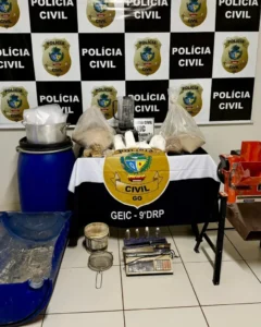 Além dos entorpecentes, foram apreendidos um triturador forrageiro utilizado para manipulação das drogas, uma balança digital de grande porte, uma balança de precisão, um aparelho celular, diversos apetrechos empregados na mistura dos entorpecentes e a quantia de R$ 4,6 mil em dinheiro. A droga apreendida está avaliada em cerca de R$ 1 milhão.