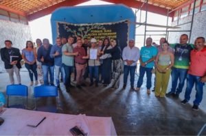 foto : vice-prefeito Akalanto, secretários e os vereadores: Zé Lopes, Wilian Faleiro, Júlio César, Marquim do Baixinho, André Logos, Paulo Jordão, Cleia Cardoso e Charles do Oceano.