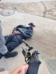Chegando ao local os militares tomaram conhecimento que Jamilton santos amorim 41 anos estava ferido e caído em frente à um barraco no lote onde mora e com intenso sangramento porém consciente. ele foi entubado e respira com ajuda de aparelhos.