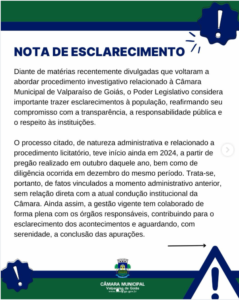 Com a publicação da matéria, a Câmara Municipal citada veio a público através da sua rede social prestar esclarecimento sobre o posicionamento do MPGO.
