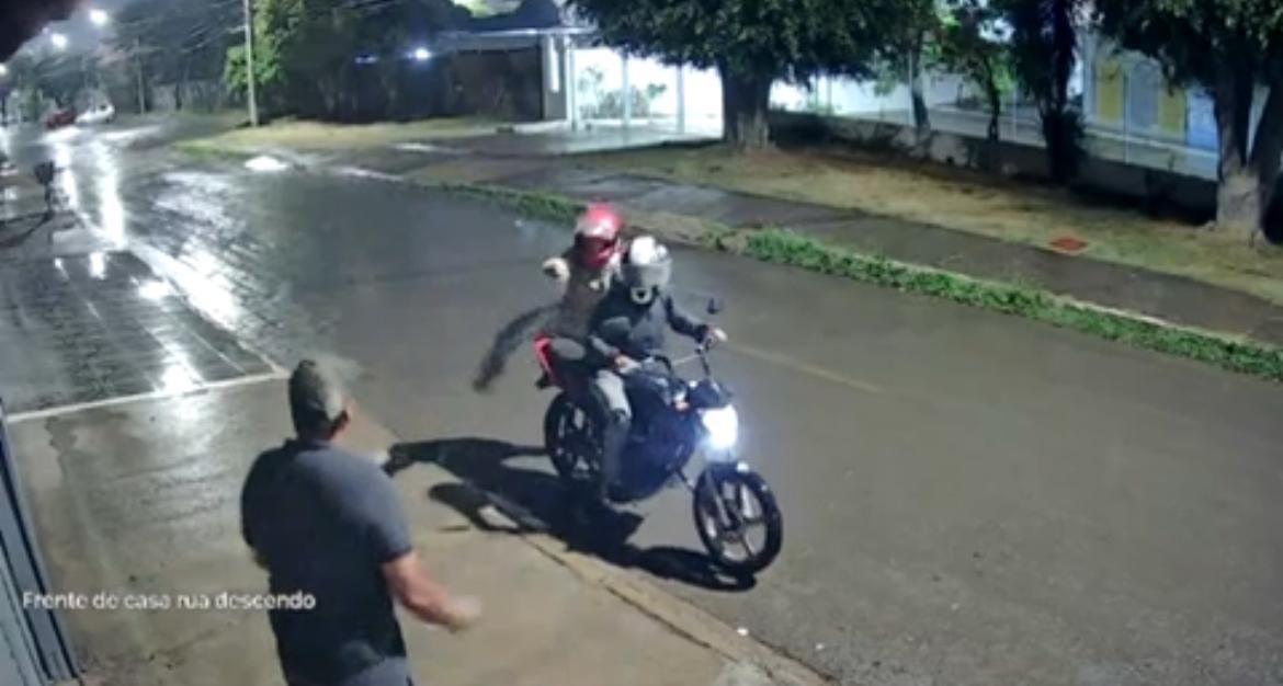 Quando os dois ocupantes da moto chegam próximo da vítima, um dos suspeitos que estava na garupa da moto desce com um objeto na mão, ainda de capacete e vai em direção da vítima que corre gritando,” Eu não tenho nada não, eu não tenho nada não”, e sai correndo pela rua perseguido pelo assaltante correndo atrás em direção oposta à que caminhava como mostra nas imagens e gritando desesperadamente.