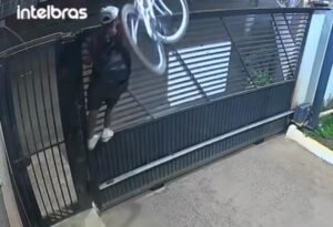 Vídeo: Ladrão pé de meia pula portão de condomínio para furtar bicicleta em Valparaíso.