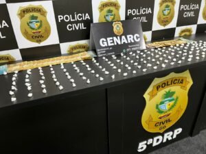 Após abordagem, foram realizadas buscas no bar e encontradas escondidas em meio de engradados de cerveja 170 papelotes de cocaína prontas para a venda, e valores em notas diversas proveniente da venda da drogra, os acusados foram presos em flagrante e levados delegacia especializada do Grupo Especial de Repressão a Narcóticos de Luziânia.